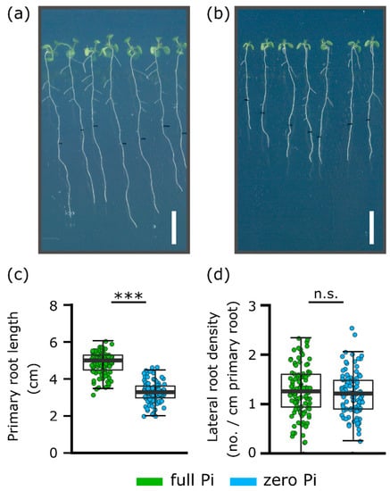 - Williamson, L.C.; Ribrioux, S.P.C.P.; Fitter, A.H.; Leyser, H.M.O. Phosphate availability regulates root system architecture in Arabidopsis. Plant Physiol. 2001, 126, 875–882. [Google Scholar] [CrossRef] [PubMed]