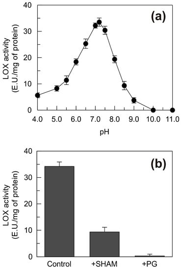 - Doderer, A.; Kokkelink, I.; Van der Ween, S.; Valk, B.I.; Schram, A.W.; Douma, A.C. Purification and characterization of two lipoxygenase isoenzymes from germinating barley. Biochim. Biophys. Acta 1992, 1120, 97–104. [Google Scholar] [CrossRef]