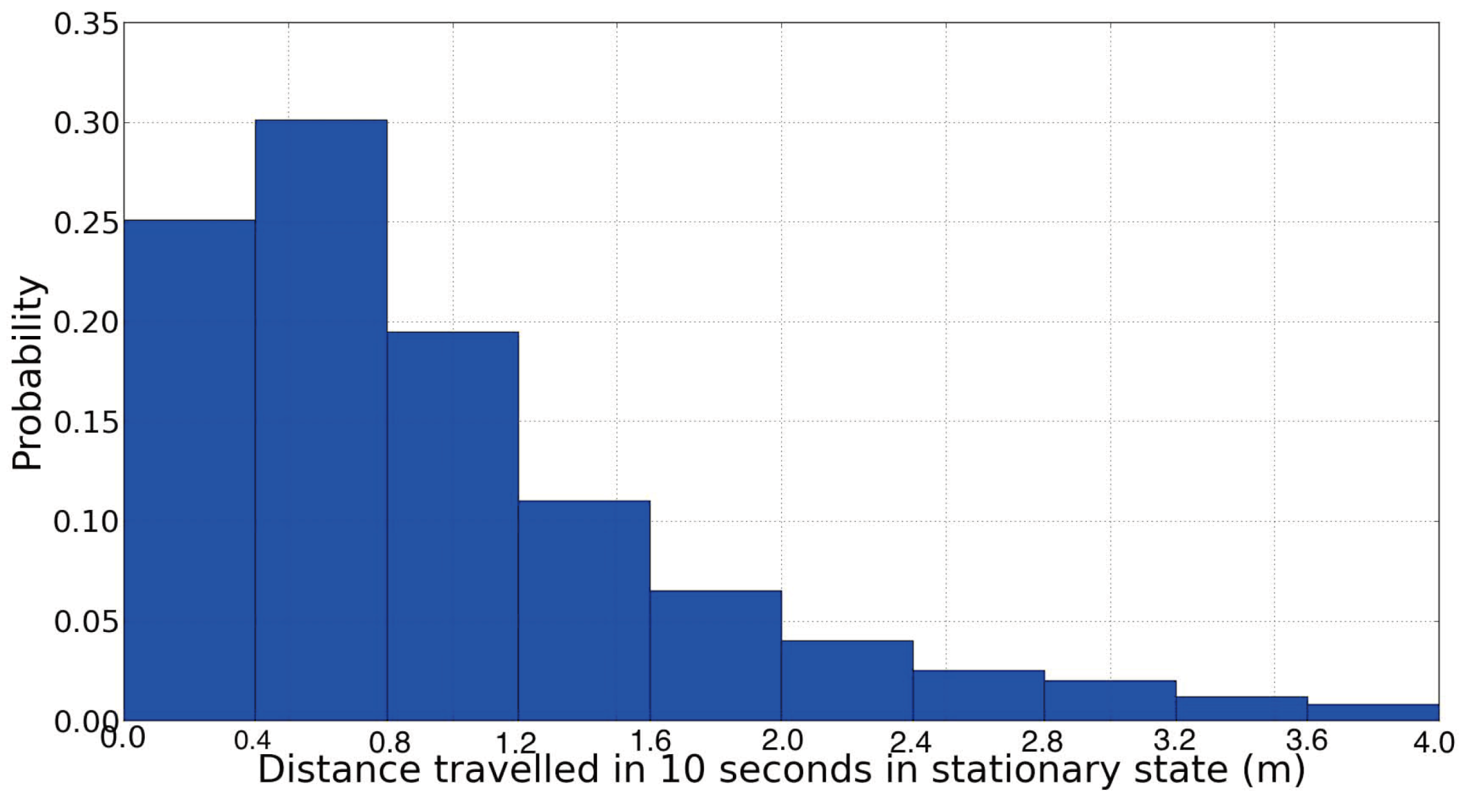 seconds, respectively. The accelerometer detects motion or non-motion by checking the amplitude of its measured signal with a predefined threshold. Nodes increase their uncertainty in both states. In the stationary state, we increase uncertainty assuming that a node is moving at a slow