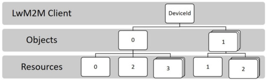 In OMA LwM2M, the device is represented by a collection of Objects and each object is composed of Resources, as shown in Figure 1.