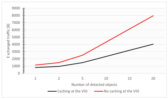 Figure 5 shows that the presence of the VIO allows for reducing the amount of exchanged data traffic. This is more true as the number of detected objects increases. Besides reducing the interactions with the physical device, the caching of inference results at the VIO has the additional benefit of avoiding the physical device to re-run the inference, by saving precious (limited) resources.