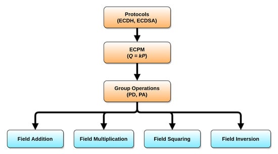 Elliptic Curve Cryptography (ECC) implementation hierarchy.