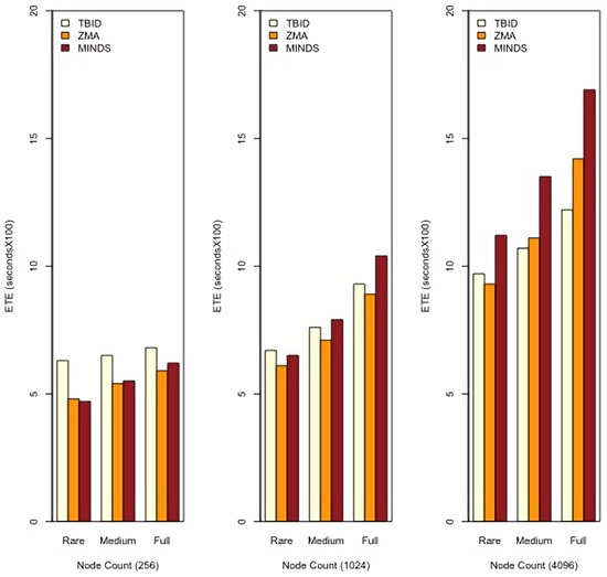 ETE is reduced in TBID compared to ZMA and MINDS. This is because TBID works according to an address-centric fashion, and therefore has no ability to find the event regions (or LDSs) throughout the network. That way, TBID leaves a number of LDSs non-visited, especially if the network is large and crowded. Moreover, TBID offers no minimum hop-count paths to forward MAs to collect and aggregate sensory recordings.