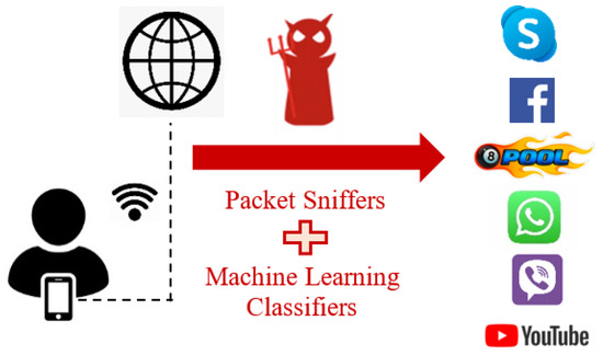 Nowadays, statistical traffic analysis is becoming an attractive tool for developing algorithms to evaluate and manage internet network traffic. By definition, traffic analysis is a network engineering technique that consists of examining statistical features of flow packets (e.g., packet sizes, inter-arrival times, and packet directions) and building classifiers, using machine-learning algorithms to infer traffic information. Network administrators take advantage of traffic analysis techniques for the purposes of intrusion detection to detect abnormal traffic [1,2,3], and to differentiate malicious traffic flows [4]. In addition, a proper deployment of traffic analysis provides valuable insights for resource management, traffic control, diagnostic checking, and provisioning. Engineers can use this information to build robust networks and avoid possible delays. To this end, traffic analysis is used to support internet-based services, including banking, health, military, government, electrical systems, and transportation.
