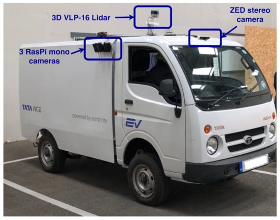AVs depend on many sensors to find their way among static and dynamic obstacles; each of those sensors has strengths and weaknesses. Cameras and LiDARs are usually used together in perception systems to provide a high level of certainty. LiDAR often provides excellent odometry, localization, mapping, and range information but with a limit to object identification. Cameras provide better recognition but with limits to localization accuracy []. A multi-sensor system can provide reliable information for perception in joined-up software architecture for timely processing of the sensory data in the context of localization and mapping, planning, dynamic obstacle detection, and avoidance [].