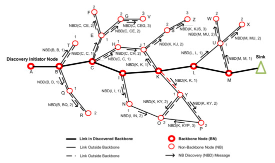 - The discovered backbone can be used for the transmission of data messages to the nearest sink, which is located at the end of the LSN.