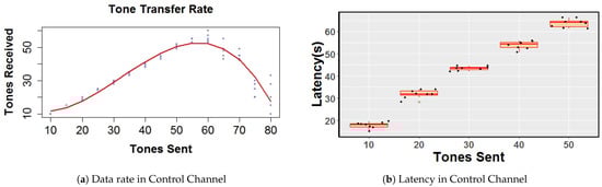 Characteristics of tone transfer. (a) Data rate in Control Channel; (b) Latency in Control Channel.