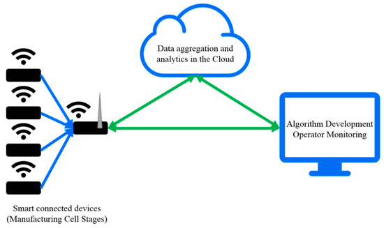 The generalization of this work to other manufacturing cells presents some advantages but also many challenges: one challenge is related to the more complex cells, such as aeronautics construction, where the number of machines largely surpasses the number of machines analyzed in this work. Nevertheless, the IoT architecture defined was tested for seven machines simultaneously and the load did not go over 12.5% of the maximum load. So, in a very rough estimation, the number of machines may be four time higher and the load will still be in the order of 50%, which is relatively safe. Moreover, the architecture assumes that many gateways can be created for handling several groups of nodes. Generating too much data may be difficult to handle on the management mainframes, so these mainframes will probably need to be upgraded.