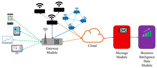The Gateway module is liable for the business rationale of the combination of the interrelationship of physical and computerized world. It contains the services expected to present the needs of a specific IoT element activity. It receives and sends orders from and to the various modules. The Gateway module can demand data about the nodes, status of the current activity. A command can be created in this module and sent to an IoT module.