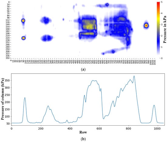 Pressure distribution of people lying down: (a) Pressure area; (b) Summation of column.