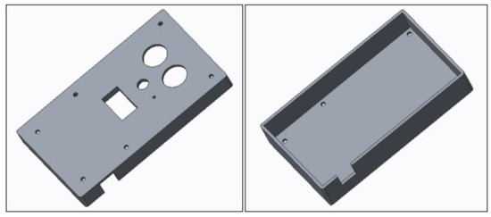 Lastly, the signal pin on the buzzer is connected to pin D7. The active buzzer will sound as soon as it is energised with a DC voltage. However, since the frequency is fixed, it can only produce a continuous or pulsed audio signal [23]. With all components interfaced to the system, the next step was to design a custom rugged enclosure to protect the fragile electronic parts from the elements, whether indoors or outdoors. With the dimensions of the components measured, computer-aided design (CAD) software—CREO Parametric—was utilised to model the case.