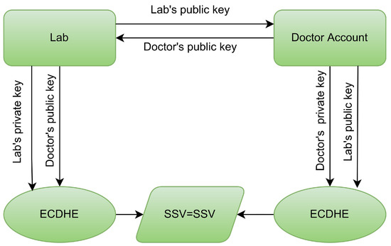 The proposed algorithm uses a multi-key process in medical image encryption to establish secure transmission. The Public key Module (PKM) module manages a shared secret value (SSV) between the laboratory and patients’ doctors’ accounts. The key management system starts with generating standard parameters of ECDHE. Doctors start the connection by sending their public keys to LAB, which generates a private value used in ECDHE to generate SSV. The same thing happens on the LAB side, where the LAB sends its public key to the doctors, generating the SSV using ECDHE. See Figure 1 which illustrate the PKM module.