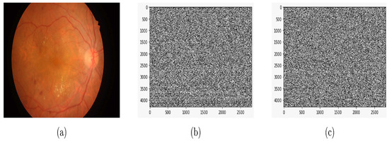Image encryption steps: (a) Original Image, (b) The AES-GCM mask image, and (c) The encrypted image.