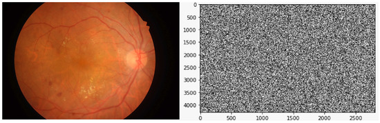 The second encryption layer used is Block Cipher the cipher generated from the masking process can be described as an encrypted form of the image. Yet the encryption process goes on to the next step to add more distortion to the image and security. EKM generated a total number of 256 secret keys. The 256 secret keys were used to encrypt the masked image using the AES-GCM encryption scheme. The first 256 bytes of the masked image were encrypted using the generated 256 secret keys, and the process was repeated on the next 256 bytes till all the image bytes were encrypted using the secret keys. After encrypting the fundus image in Figure 7a, the output is shown in Figure 7c.