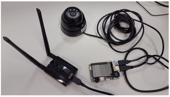 The hardware infrastructure relies on a distributed network of IoT camera nodes, four in the indoor setup and five in the outdoor setup. A node consists of a USB camera and its edge computing device. Such nodes communicate through a wireless network. In particular, we used off-the-shelf low-cost hardware; detailed information is reported in Table 2. Figure 4 shows an example of the type of IoT camera node used in the experiments.