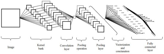 - Convolutional Layer: As the central layer of the convolutional neural network, the convolutional layer extracts different features of the input data by convolutional operations, and it also reduces the number of parameters to prevent overfitting caused by too many parameters. The convolutional layer can have multiple convolutional kernels, and each element of each convolutional kernel also has corresponding weight coefficients and deviations. When the convolutional kernel slides to each position, it performs an operation with the input image and projects the information in its field of perception onto the feature map. The parameters of the convolution layer mainly consist of the convolution kernel size, padding, and step size. The size of the convolution kernel needs to be smaller than the size of the input image, and as the convolution kernel gets larger, the input features that can be extracted become more and more complex. The padding process is to artificially increase the size of the feature map before it passes through the convolution kernel to counteract the negative effects of size shrinkage during the computation. The step size of the convolution mainly defines the distance between two adjacent positions of the convolution kernel during the scanning of the feature map. When its value is 1, the convolution kernel scans every element of the entire feature map; when its value is n, it skips n-1 pixels after each scan to continue scanning.The dimensionality of the convolution layer can be calculated from the filter of size (,,c), the input image of fixed size (H,W,C), the step size , and the number of zero padding . The calculation formula is as follows:The convolutional layer usually has an activation layer, which is usually combined with the convolutional layer and called the “convolutional layer”. The activation layer is a nonlinear mapping of the output of the convolutional layer, and the activation function used is usually the ReLU function.