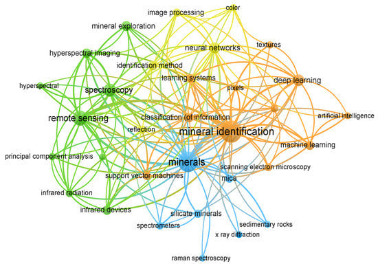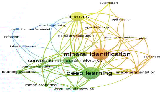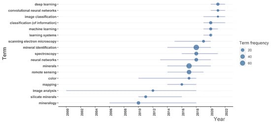 In order to better explore the hot spots of intelligent mineral identification research in recent years, we detected the emergence of field keywords and plotted them as shown in Figure 3.