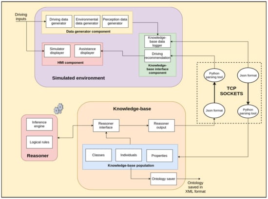 An ontology allows for the storage and management of different objects from a common context. In addition to being able to represent all the elements of a situation, it is also possible to add a layer of intelligence and reflection through the use of reasoners. A reasoner is a tool that can infer logical conclusion from a set of given facts, making the classification of an ontology easier. For example, if we declare V as an instance of a car, and the class Car is a subclass of Vehicle, then the reasoner can infer that V is a vehicle [43].