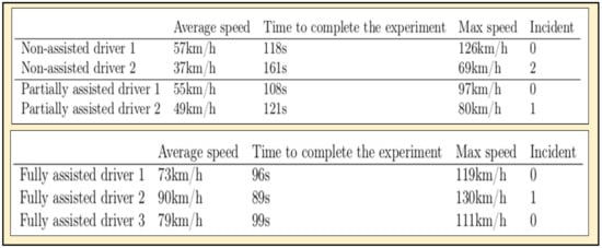 - When drivers are fully assisted, the time for the pilot to complete the test circuit in the experiment is faster. Their average and maximum vehicular speeds improve significantly.