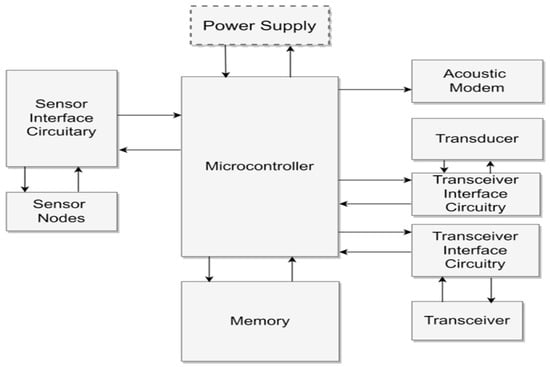 Internal architecture of sensor networks for underwater wireless communication.