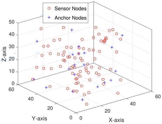 Deployment of sensor nodes in 3D for the proposed underwater wireless sensor network.