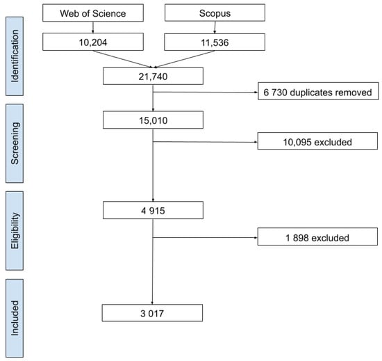 - This resulted in 3017 articles included in the review, which matched the defined scope;