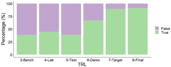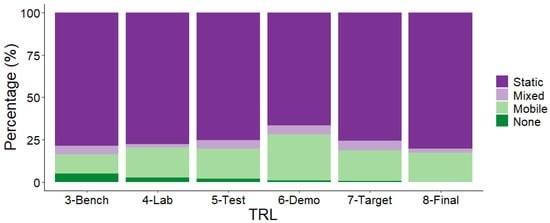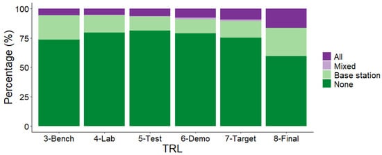 The gathered data also allow us to look at this from different perspectives, the sensor deployment technology readiness level when using a testbed facility is shown in Table 5. The data show that by far the most deployments used a testbed facility when the deployment was targeting TRL5, which is expected, as TRL5, as stated in the EU Horizon 2020 program [], means that the “technology has been validated in relevant environment” and the testbed facility can be regarded as a relevant environment, because usually it is not located directly at the laboratory.