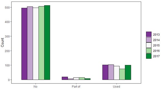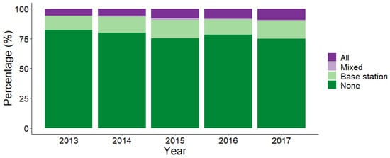 The data show that sensor networks remain equally relevant throughout the 5-year timespan of the review. Table 1 shows how many actual sensor network deployments were described in a publication from 2013 to 2017. In this time, the biggest difference in the number of deployments was only 0.85% (26), showing that the field is relatively mature—not growing, but also not declining, with a stable number of research papers describing innovative deployments.