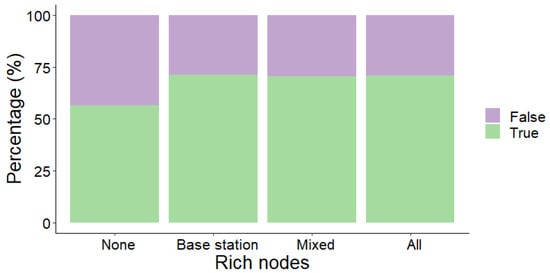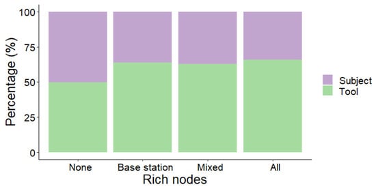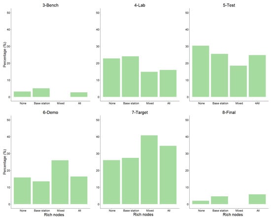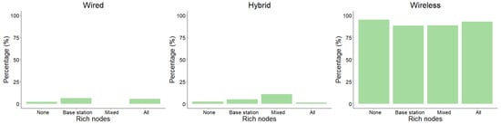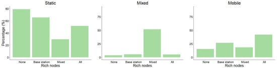 If the node mobility is mixed, it is more probable that the rich nodes will be mixed, as well. Instead, if all nodes are rich, then it is more common for sensor networks to be mobile (smartphones, PC on Roomba, etc.) Mixed mobility is also quite common if all nodes are rich, see Figure 27.