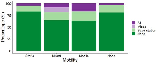 Sometimes sensor networks are used in a field that requires mobile solutions, e.g., automotive industry. These types of nodes are much more complex and have to battle with the software optimization, smart duty cycles and even dimensions. Our results show that 74.73% (2286) of the deployed sensor networks are considered static, without any mobility aspect whatsoever. We could not identify the mobility status of 1.73% (53) of the networks. The remaining 23.54% (720) of networks use at least some mobile nodes (4.58% (140) “Mixed” deployments with a mix of static and mobile nodes and 18.96% (580) “Mobile” deployments consisting of only mobile nodes).