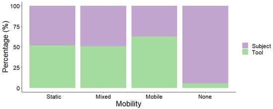 If the sensor network is used as a tool, it is more likely that, in some way, it will be mobile, while the opposite is true if the sensor network is a subject, Figure 28.