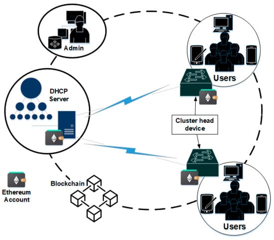 The system consists of a private Ethereum blockchain network, with a DHCP server (DS) linked to cluster head devices (CHD) over the blockchain home network as given in Figure 1. Each CHD is further linked to a group of smaller smart home devices making up its unit. A smart home network administrator (Admin) is the owner of a private network that controls the network and registers all devices using the proof-of-authority (PoA) consensus algorithm. Each CHD as well as DS and Admin utilizes a distinct Ethereum accounts, thus, they all have a unique Ethereum address (EA) for network communication. We assume in this study that both the DS, CHD and Admin devices are computationally capable of handling the blockchain ledger, therefore the CHD is employed to relieve the smart home devices of the computing constraint imposed by the blockchain ledger. And hence, the DS, CHD and Admin are regarded as the primary stakeholders in this study. Table 2 provides the descriptions of all the notations used in this paper.