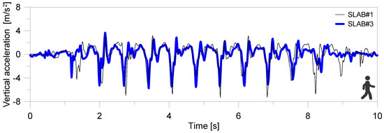 - on the other hand, a marked sensitivity (in terms of standard deviation) and low amplitude (compared to literature expectations) was found for DLF corresponding to the first harmonic for the pedestrian walking on transparent flexible floors. This was noted both for SLAB#2 (with high vibration frequency) and SLAB#3 (low frequency);