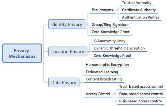 Among the methods of IoV privacy protection, public keys and anonymous certificates are common. At the same time, many new technologies are gradually incorporated into IoV protection. While new technologies bring convenience, they also raise new problems, and scholars have explored new approaches [,,,,,,,] for this purpose.