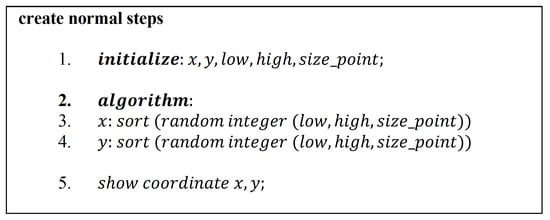 This research uses augmented data which are generated through the program. The augmented data in this research consist of normal and abnormal movement classes. Figure 2 shows the algorithm to get the normal path, while Figure 3 shows the algorithm to get the abnormal path. The number of steps (points) generated in this research was 10, 15, 20, 25, and 30. The data used in this study are 480 in each class, so the total amount of data is 960. The data distribution is 75% for training data and 25% for testing data. The data used for the training process are 720, while the amount for testing is 240.