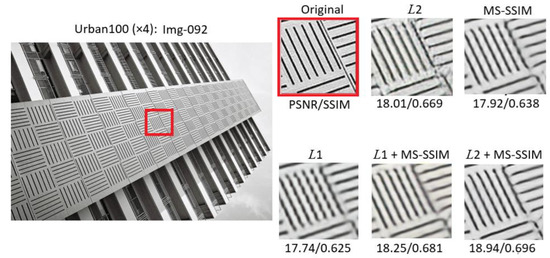 Despite the importance of loss function in the learning process of neural networks, the loss function has attracted less attention in the SR field. Using a type of loss function in the SR model that correlates with the Human Visual System (HVS) improved the reconstructed quality of the image [49]. Some image-restoration learning-based models use MS-SSIM, such as underwater image restoration [50]. The image-dehazing model is not optimal, and successfully increased the performance of their model using this loss function. Since MS-SSIM loss operates based on HVS (luminance, contrast, and structure), it shows a noticeable improvement in the perceptual quality of results in image-restoration models.