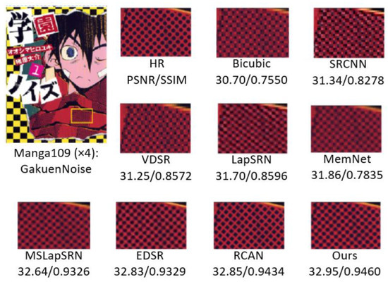 - Kim, J.; Lee, J.K.; Lee, K.M. Deeply-recursive convolutional network for image super-resolution. In Proceedings of the IEEE Conference on Computer Vision and Pattern Recognition, Las Vegas, NV, USA, 7–30 June 2016; pp. 1637–1645. [Google Scholar]