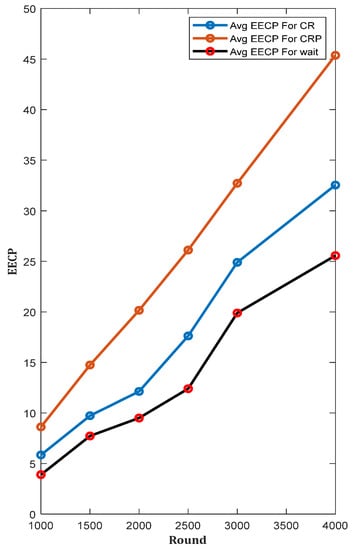 Figure 11 illustrates the values of the effective energy cost percentage. A high EECP value implies that the protocol uses the energy more efficiently for the actual detection of the target, which is the desired goal of a wireless sensor network. A low EECP value, on the other hand, would indicate that a smaller proportion of the energy consumed by the nodes is being used for the actual detection of the target, which would be less efficient and may not achieve the desired goal of the network.