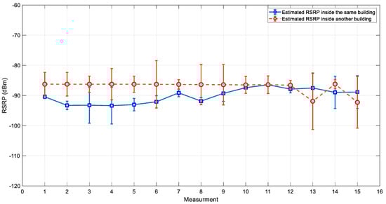 Predicted indoor RSRP and error bar using outdoor measurements.