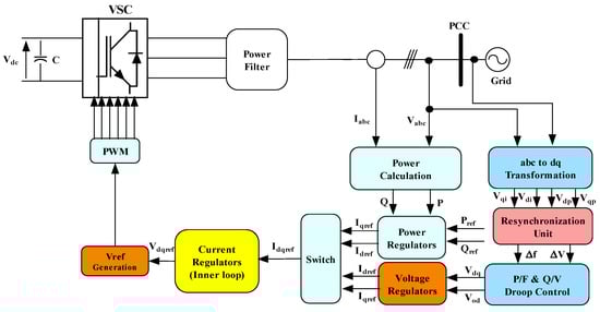 - He, J.; Li, Y.W.; Blaabjerg, F. An enhanced islanding microgrid reactive power, imbalance power, and harmonic power sharing scheme. IEEE Trans. Power Electron. 2014, 30, 3389–3401. [Google Scholar] [CrossRef]