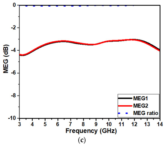 MIMO diversity features: (a) ECC and DG, (b) TARC and CCL, and (c) MEG.