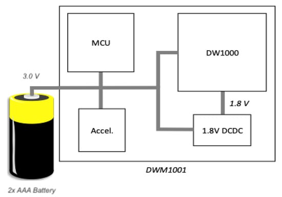 www.qorvo.com; accessed on 15 May 2023), which leverages UWB radio frequency (RF) technology to communicate the exact position of RF tags posed on the item which has to be tracked; the environment in which these items are moved is covered by fixed antennas, called “anchors”, aimed at boosting the signal. The choice has fallen on UWB given the fact that, from previous studies, it turned out to be the best technology in terms of efficiency [