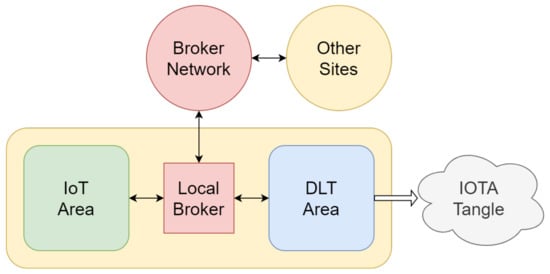 The purpose of the fog computing paradigm is to simplify the central network components and shift the complexity to peripheral ones. When adopted in a modular system like the proposed one, where a hierarchical network of Brokers represents the central component, it offers significant scalability advantages. Additionally, each site independently manages data storage within the IOTA Tangle, eliminating the traffic flows that would arise with a centralized database.