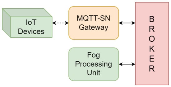 Finally, another more interesting candidate is represented by the Message Queue Telemetry Transport (MQTT) protocol designed for monitoring applications []. In contrast to previous protocols, it relies on the publish-and-subscribe paradigm, in which publishers (e.g., sensors) transmit data messages to a Broker, which in turn delivers such messages to interested entities, called subscribers []. This approach is extremely flexible but places complexity on the Broker. Furthermore, MQTT defines a lightweight header format and requires a small code footprint. In addition, a variant of this protocol, called MQTT for Sensor Networks (MQTT-SN), has been specifically designed to address typical IoT constraints by means of its optimized architecture, interfaces, and components [].