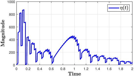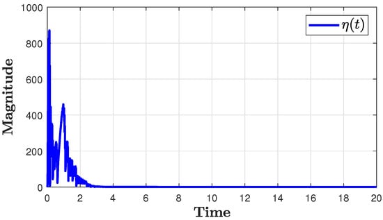 Let , , and . A continuous function is of class if it is zero, at zero, and strictly increasing. It is of class if, in addition, as . A continuous function is of class if for each fixed , is of class , and is non-increasing and satisfies, for each fixed , . A function is locally Lipschitz-continuous if, for each , there exists a neighborhood and a constant , such that for all . Given a locally Lipschitz function , denotes the Clarke generalized gradient at , given by . We denote the minimum and maximum eigenvalues of the real symmetric matrix A as and , respectively. We write to denote the transpose of A, and stands for the identity matrix of dimension n. The symbol ★ stands for symmetric blocks. We write to represent the vector for and . For a vector , we denote by its Euclidean norm, and for a matrix , . Given a set and a vector , the distance of x to is defined as .