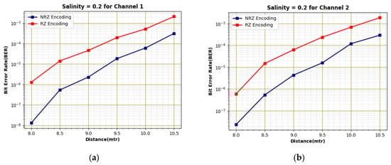 | 2023 [39] | NRZ | 3.06 m to 2.72 m | 500 Mbps–10 Gbps | Introduced PDM for higher data rates and improved connectivity in varying underwater conditions. |