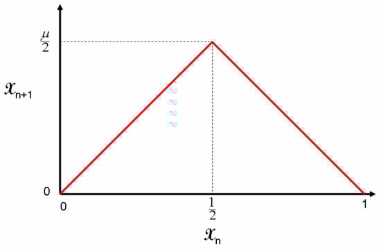 Figure 2 depicts the iterative procedure employed to generate the orbit of the Tent- Map for the given initial condition and control parameter . By examining this figure, it becomes apparent that the function reaches its maximum value when equals 0.5 [].