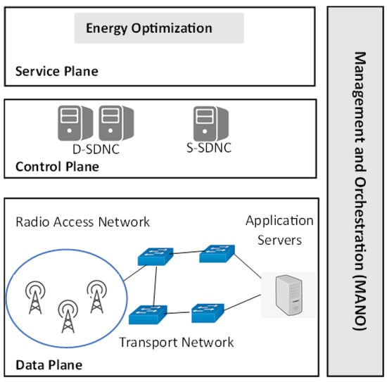 - Management and orchestration (MANO) plane: The MANO plane is in charge of slice description, instantiation, and life-cycle management. The MANO plane’s core is an SDN controller called software defined orchestrator. The latter enables resource distribution across the slices of numerous operators.