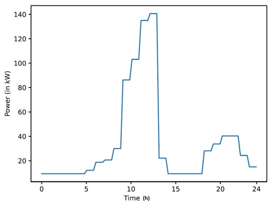 The equipment types listed in Table 2 are based on a standard rural medical clinic facility described in [], and are not essentially intended to operate at the same time, as each device has a specific daily operating routine. The primary load typically takes place during the morning from 9 AM to 1 PM and in the evening from 7 PM to 10 PM. To account for the variability of load variation, a daily random noise of 10% and an hourly random variability of 15% is defined. The load profile can be scaled to suit larger healthcare facilities by introducing a multiplication factor. The power load of the healthcare facility with an arbitrary factor of 38 is shown in Figure 6.