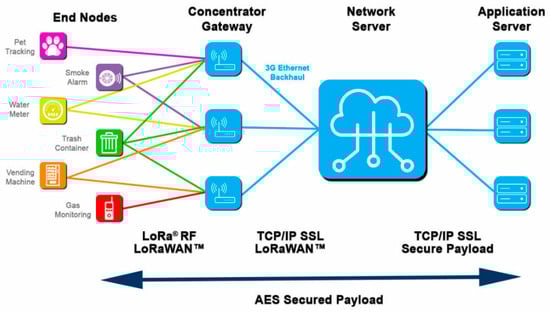 - Aslam, M.S.; Khan, A.; Atif, A.; Hassan, S.A.; Mahmood, A.; Qureshi, H.K.; Gidlund, M. Exploring Multi-Hop LoRa for Green Smart Cities. IEEE Netw. 2020, 34, 225–231. [Google Scholar] [CrossRef]